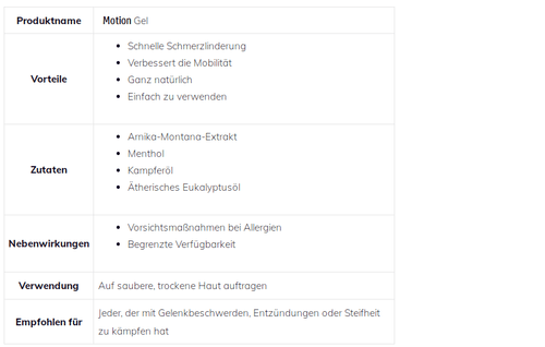 Ohne Zweifel funktioniert das Motion Energy Gel. Ich kann dies sowohl aus eigener Erfahrung als auch aus der laufenden Verwendung des Produkts bestätigen. Mit seinen schmerzstillenden und entzündungshemmenden Eigenschaften genießt das Motion Energy Gel einen guten Ruf, der durch Benutzerbewertungen und medizinische Erfahrungsberichte gestützt wird. Als jemand, der die Vorteile persönlich gespürt hat, habe ich eine Verringerung der Muskelspannung und eine Verbesserung der Gelenk Flexibilität festgestellt. Die Ansichten der OCU haben ergeben, dass es sich nicht um Betrug handelt. Bewertungen und Beobachtungen zeigen, wie gut es Gelenkschmerzen und Steifheit lindert.
